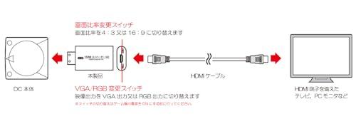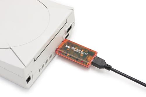 ノスタルジックなスケルトンカラー、「クリアオレンジ」が登場! 懐かしのゲーム機「ドリームキャスト」に対応した、「映像出力変換コンバーター」です。本製品をお使い頂く事で、ドリームキャスト本体をTVに繋げる際に、現代のTV環境で便利に使用できる「HDMIケーブル」を使った接続方法が可能になります。 本製品「V2」は充実の機能として、「VGA出力変換」・「RGB出力変換」を切り替えられる、「VGA/RGB変更スイッチ」を搭載しています。この機能を搭載したことで、「VGA対応のゲーム」、「VGA非対応のゲーム」、どちらでも本製品をお使い頂けるようになり、VGA出力対応のゲームソフトでは、VGA出力のキレイな映像でゲームがお楽しみ頂けます。 また、「画面比率切り替えスイッチ」も搭載しておりますので、当時遊んだ環境を再現した「スタンダード(4:3)」と、現代のテレビの仕様に合わせた「ワイド(16:9)」を、お好みに合わせていつでも切り替え可能です。 ※対応解像度:1080p ※本製品にアップコンバート機能は搭載されておりません ※本製品は、全てのゲームでの完全な動作を保証するものではありません。ゲームによっては正しく映像が出力されない場合があります。あらかじめご理解の上お買い求めください