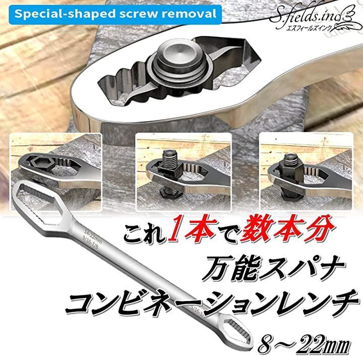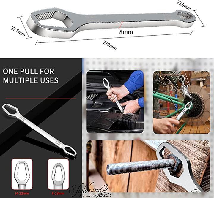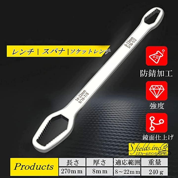 [S.fields.inc]コンビネーションレンチ スパナ27cm1本で8mm~22mm薄型自転車バイク