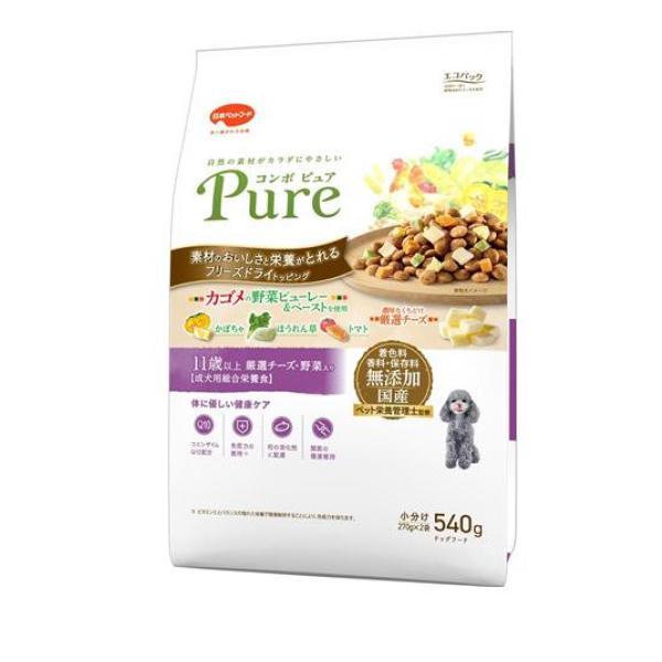 製品の特徴●日本ペットフード COMBO Pure コンボ ピュア ドッグ 11歳以上 厳選チーズ・野菜入り●素材、本物にこだわり抜いた、混じりっけないピュアなおいしさ。●不要な添加物は取り除き、本物を追求したブランド。●着色料・香料・保存料無添加。●シニア犬の食べやすい薄型小粒タイプ。●国産鶏肉の旨みに、8種類の野菜パウダーを配合し、必要な栄養が1度にとれる『おいしい栄養バランス』設計。●加齢とともに減少する成分「コエンザイムQ10」配合。●グルコサミン、コンドロイチンを強化。●麹菌由来の酵素パワーで粒の消化性にも配慮。●素材そのまま、クリーミーな味わいと深みあるコクをより感じられるフリーズドライ厳選チーズに、カゴメの野菜ピューレー&ペーストを使用した3種の野菜フリーズドライをトッピング。●オレイン酸を多く含み、クセがなく素材の旨みを引き出すオリーブの恵みピュアオイル。●環境にもピュア。植物由来のインキを使うことでCO2の排出削減に貢献。●区分:ドッグフード(成犬用総合栄養食)●フードタイプ:ドライタイプ●成長段階:成犬用(11歳以上)●原産国:日本(国産品)