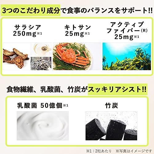 【食生活をサポートするサプリ】「糖質・脂質・塩分」に着目し、正しくかしこく食べながら、トリプルコントロールとスッキリアシストでスリムサポート。がまんせずにおいしく食べたい方におすすめのサプリメントです。 【毎日続けられる「糖・脂・塩」習慣】普段の食事で特に気になる「糖質」「脂質」「塩分」。がまんよりもポケットにこれひとつで、正しい食生活と健康的な毎日を応援します。 【3つのこだわり成分】サラシアは、ニシキギ科のつる性植物由来の成分です。キトサンは、カニ由来の成分で、食物繊維の一種です。アクティブファイバー??は、海藻由来の食物繊維で、水溶性・不溶性の2種類の食物繊維を含んでいます。 【スッキリをアシスト】アクティブファイバー??に含まれる食物繊維が、食品中のナトリウムをサポート。併せて菌が小さく、体内に取り込まれやすい乳酸菌を配合。さらに不要成分を吸着する素材として近年注目されている、竹炭の粉末も配合しました。 【お召し上がり方】 栄養補助食品として1回2粒程度、1日1~2回を目安に、たっぷりの水またはぬるま湯と一緒にかまずにお召し上がりください。30回分が1袋になっているので、お手軽に持ち運べます。
