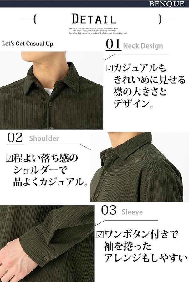 実用性と見た目のバランスがよく、長く使えるコーディロイシャツです。