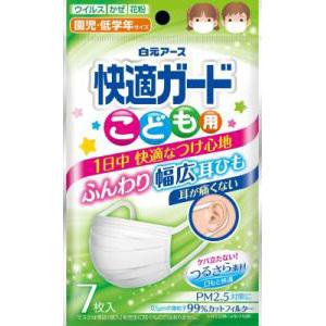 ■商品概要メーカー:白元アース商品名:快適ガードマスク こども用(7枚入)区分:日用雑貨内容量:7枚商品概要:耳が痛くない幅広耳ひもと、ケバ立たない口もとつるさら素材で、1日中快適なつけ心地JANコード:4902407581310商品コード:105810872