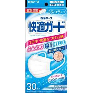 ■商品概要メーカー:白元アース商品名:快適ガードマスク ふつうサイズ(30枚入)区分:日用雑貨内容量:30枚商品概要:耳が痛くない幅広耳ひもと、ケバ立たない口もとつるさら素材で、1日中快適なつけ心地JANコード:4902407581327商品コード:105810884