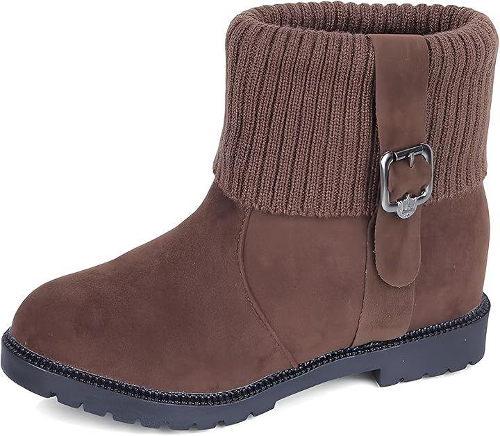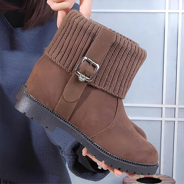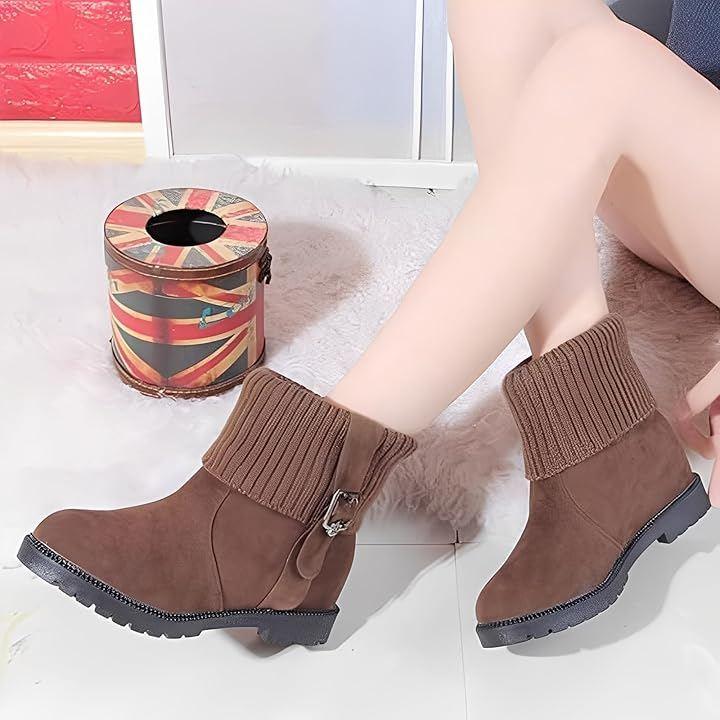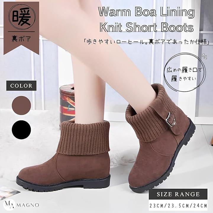 「デザイン性のあるニット素材に裏ボアであったか仕様」レディースショートブーツ