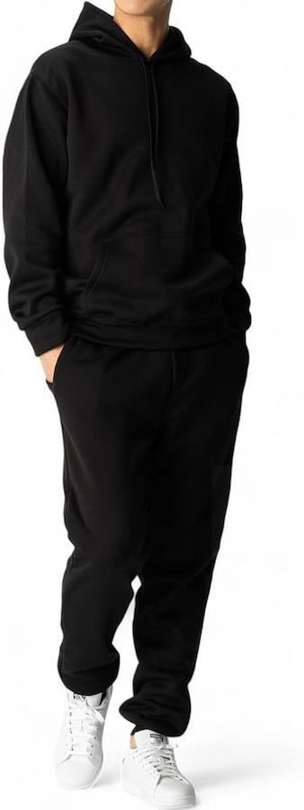 トップスにはカンガルーポケットが、ズボンにはサイドポケットが付いています。