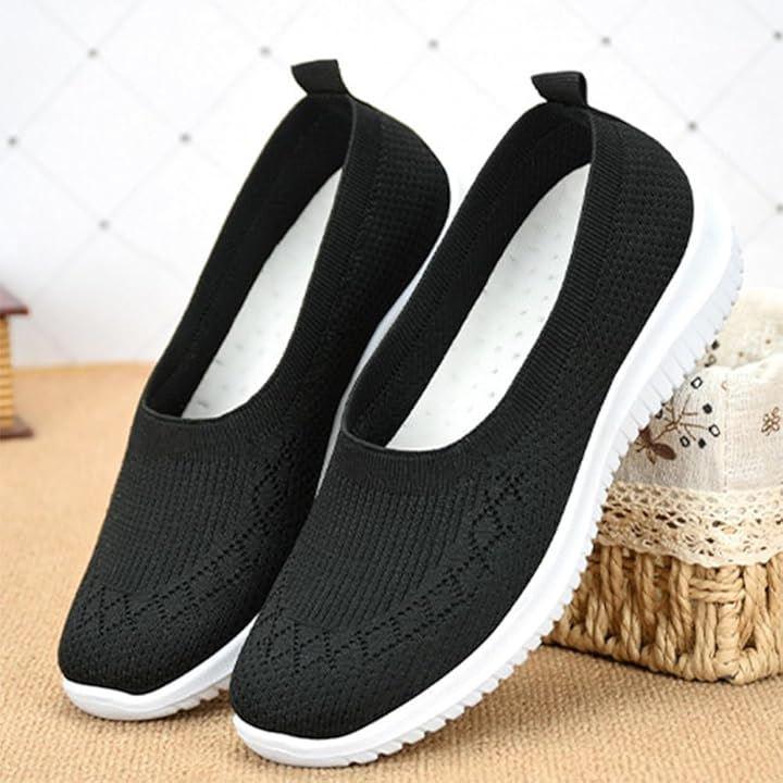「通気性に優れた素材で快適」 通気性抜群の高品質ニット素材を使用しており、長時間履いても足元が蒸れにくく、常に快適な履き心地を提供します。