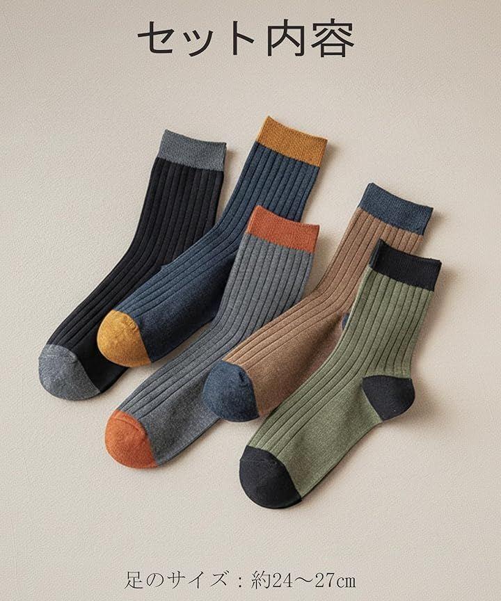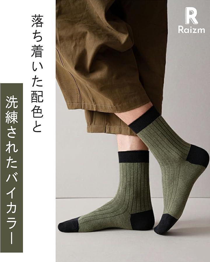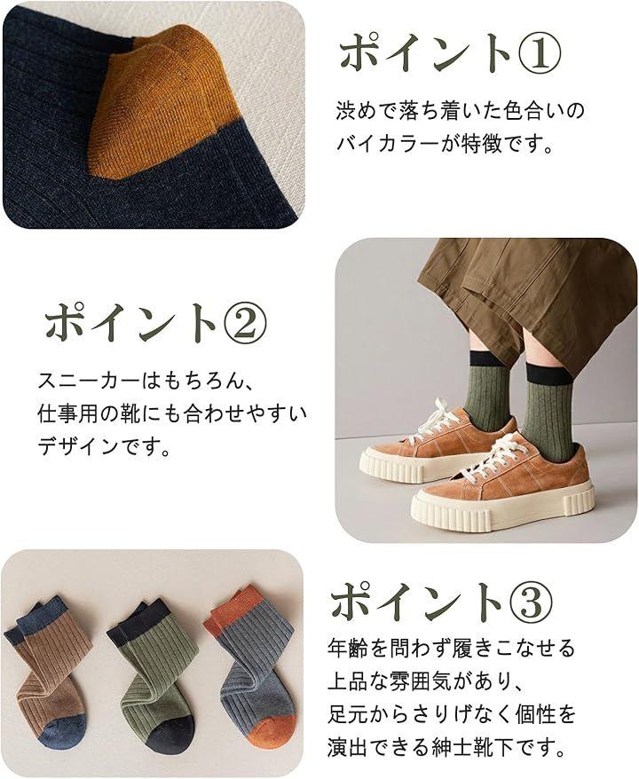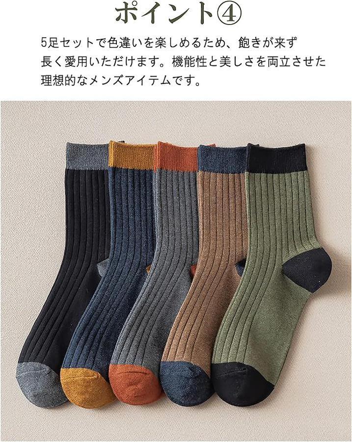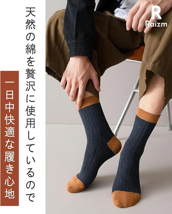 派手すぎないデザインなので、ビジネスからカジュアルまで幅広く活躍するメンズ向けのくつしたです。