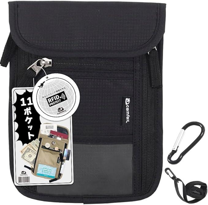 ■商品名[comfox] パスポートケース【2重スキミング防止x軽量116gx11ポケット】(移動はこれ1つ を追求) 首下げ パスポート 旅行 (日本メーカー ブラック
