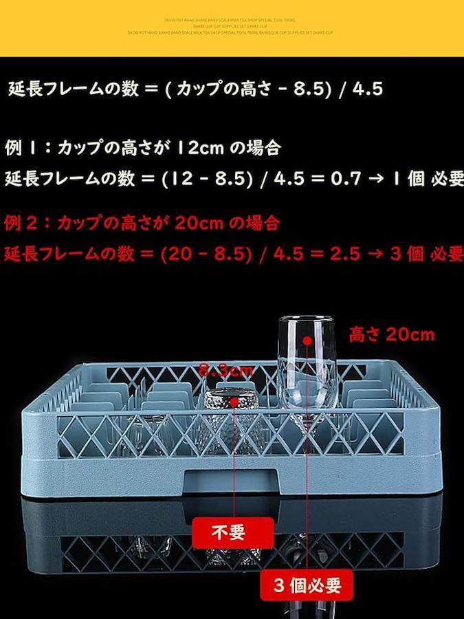 必要なスタッキングトレイの数は:(コップの高さ-8.5cm)/4.5cm