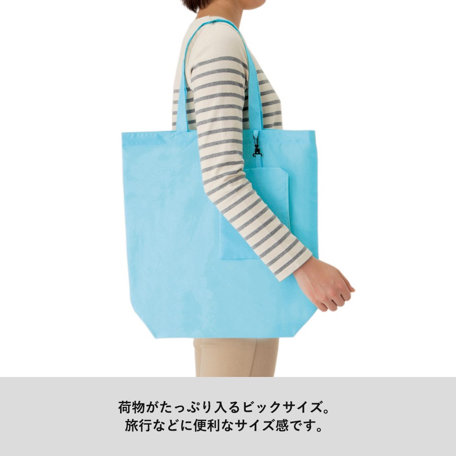 折りたたんで付属のポーチに入れておけば、旅行先などで増えた荷物も入り大助かりします。また日々のお買い物バッグとしても便利な携帯用ポリエステルコンパクトバッグです。同仕様でMサイズもございます。
