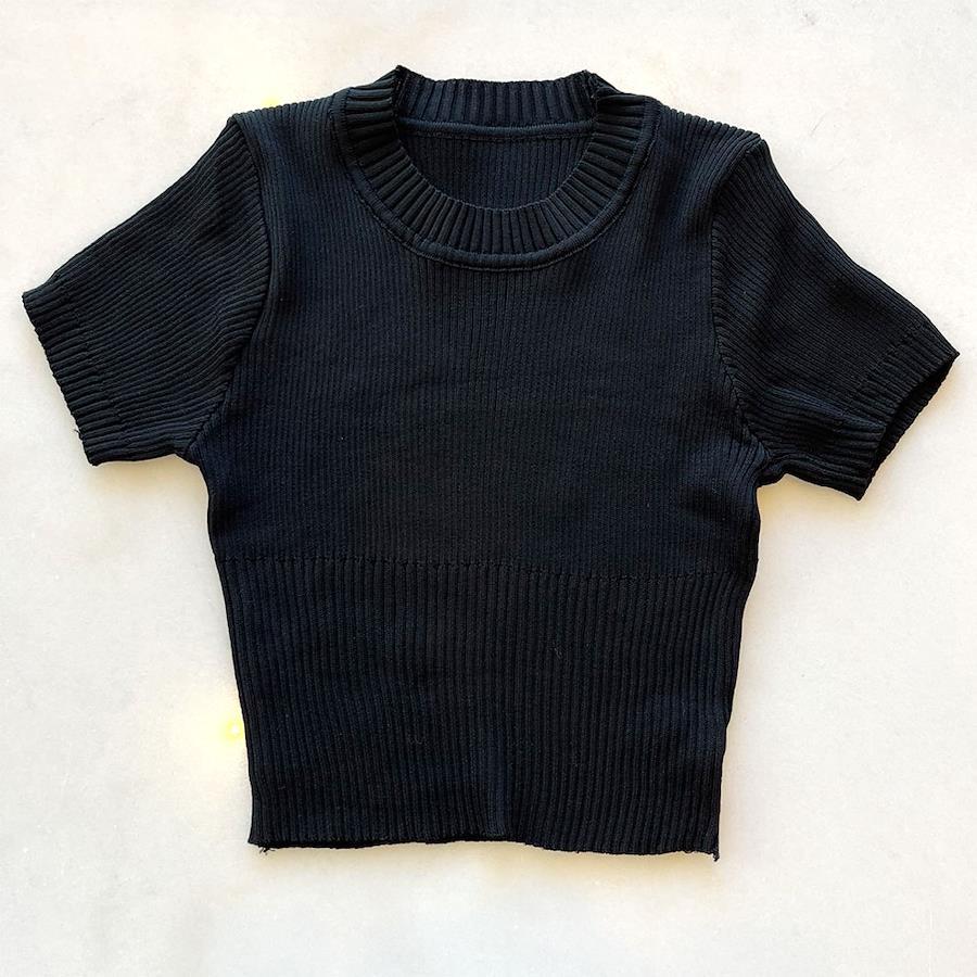 【デザイン】さらさらしたニット素材で春夏シーズンに◎カットソーとは違い、リブニットで服に表情が出てコーディネートもぐっとワンランクアップできます。バスト下でリブデザイン変えてさらにウエスト細魅せ/着痩せ効果アイテム。クルーネックでシンプルな形でカジュアルにも可愛くもセクシーにも着まわせる。可愛いレースチューブトップス合わせや重ね着も◎