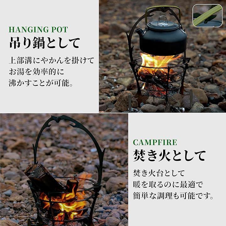 高耐久素材 : 厚みのある高品質な鉄素材を使用し、耐火性が高く、頑丈で変形しにくい焚き火台です。