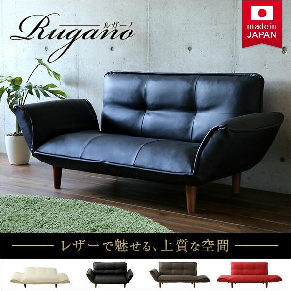 コンパクトカウチソファ【Rugano-ルガーノ-】(ポケットコイル リクライニング レザー風 日本製)