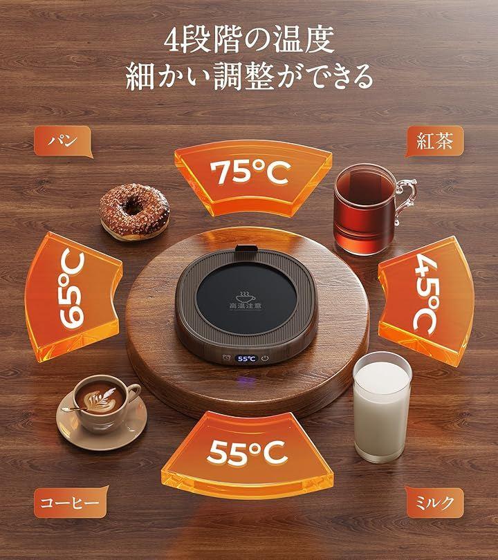 45℃から75℃まで4段階の温度調整が可能で、朝の目覚めのコーヒーから、心身をリラックスさせるお茶、夜更かしの温かいミルクまで、いつでも飲み頃の温度で提供します。