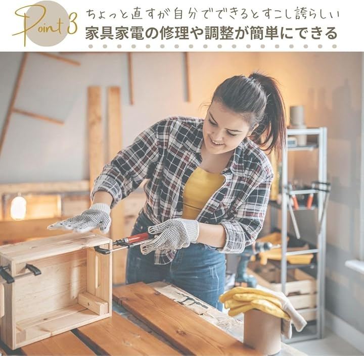 「ちょっと直すが自分でできると、ちょっと誇らしい」「ネジがゆるんだ」「家具がガタつく」「ちょっと棚をつけたい」ちょっと現状を変えたいとき、工具セットがあればすぐに対応できます。