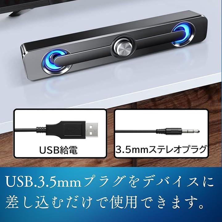 この高品質のPCスピーカーは、USBパワードサウンドバーで、PCやモバイルデバイスに最適です。