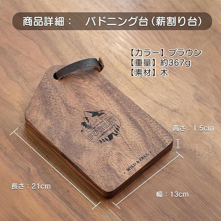 「おしゃれキャンプの必需品。」バドニング台は、コンパクトなデザインで持ち運びに便利収納にも困らない優れものです。*サイズ:長さ21cm、幅13cm、高さ1.5cm*軽量(約367g)*素材:木
