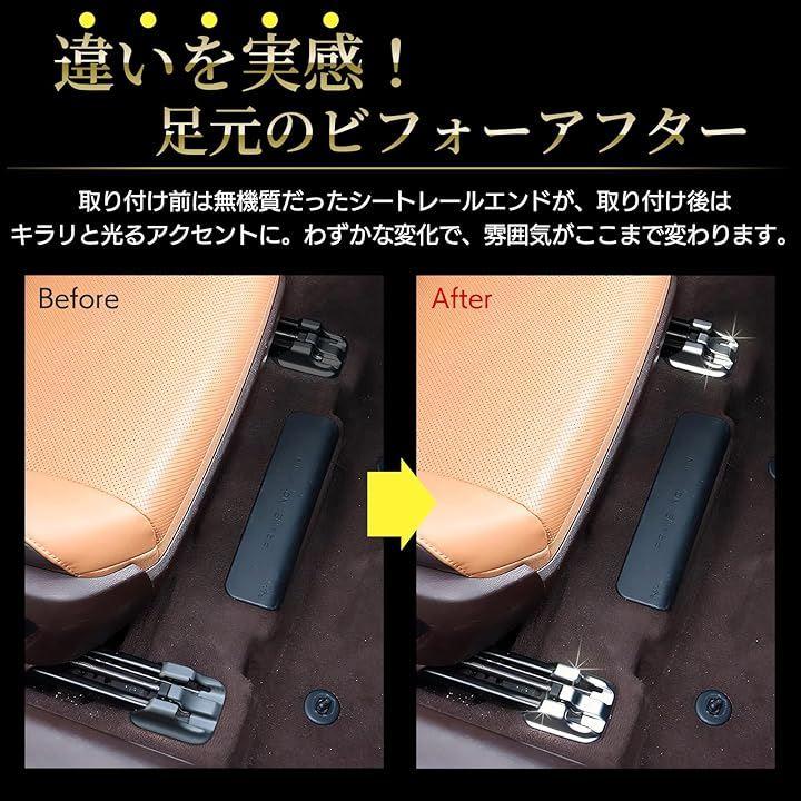 「違いを実感。足元のビフォーアフター」 取り付け前は無機質だったシートレールエンドが、取り付け後はキラリと光るアクセントに。