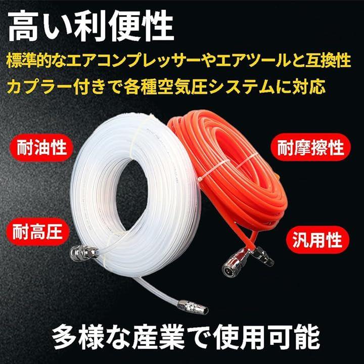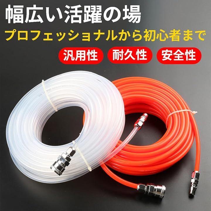 「幅広く活躍」ホースのサイズは、内径が5mm、外径が8mmとなっており、多くの標準的なエアコンプレッサーやエアツールと互換性があるため、広範囲にわたる場面での使用が見込めます。