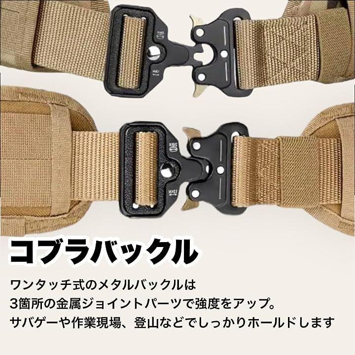 サバイバルゲームでのハードな使用はもちろん、DIYなどの軽作業における服装や、スポーツ旅行通勤通学アウトドア登山ハイキングキャンプなど様々な用途で使用頂ける金属製のメタルコブラバックルが特徴的なミリタリーベルトダンプポーチウエストベルトピストルベルトサバゲーベルトウェストベルトクイックベルトコブラベルトガチャベルトになっております。