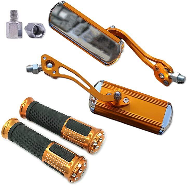 汎用タイプでアルミ&ゴムのグリップとアルミ製(両端はメッキ)でスクエア型のカスタムミラー左右セットです。
