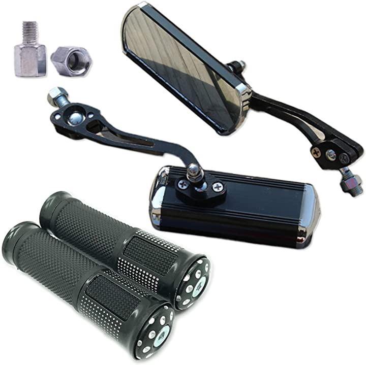 ・汎用タイプでアルミ&ゴムのグリップとアルミ製(両端はメッキ)でスクエア型のカスタムミラー左右セットです。