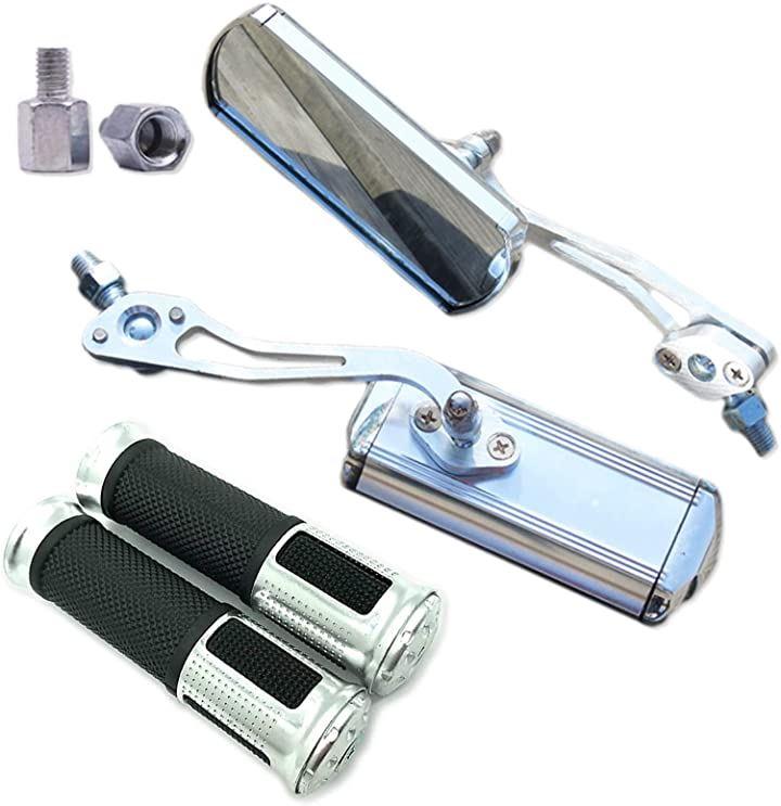 ・汎用タイプでアルミ&ゴムのグリップとアルミ製(両端はメッキ)でスクエア型のカスタムミラー左右セットです。