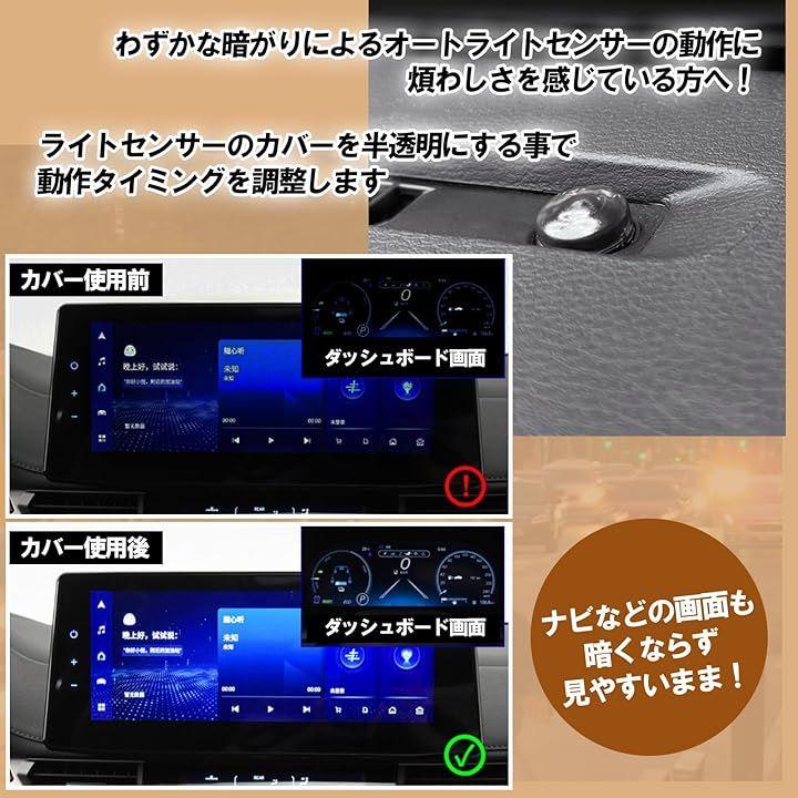 少し暗くなるとカーナビが暗くなる、コンライトセンサーのカバーは、センサー機能を損なうことなく、自動でライトを点灯・消灯する機能を保持したまま、調光を行います。