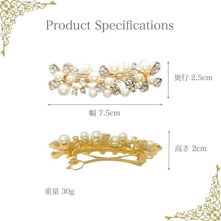 柔らかく温かみのあるパールと繊細な花模様が調和し、結婚式や記念日など、特別な日のヘアスタイルに特別な輝きを加えます。