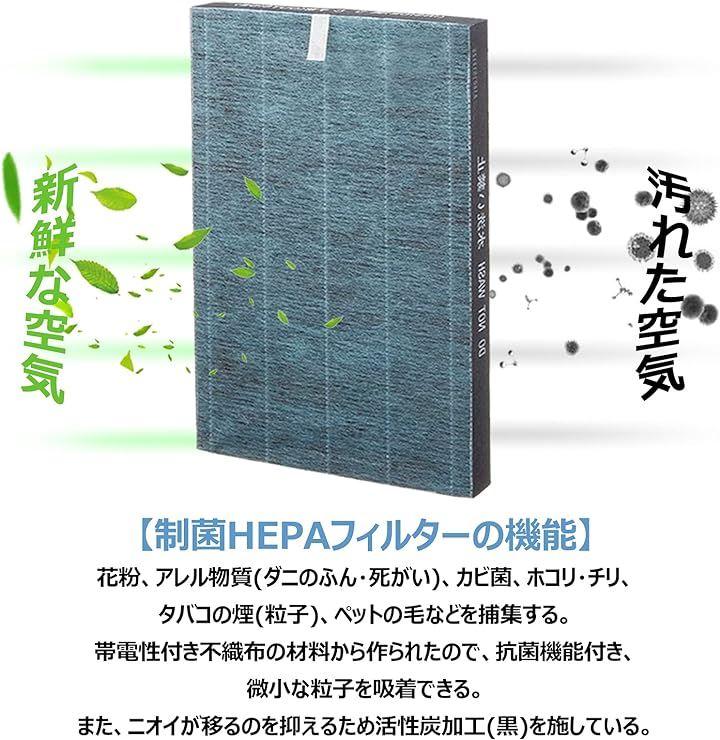 「性能」帯電性付き不織布の材料から作られたフィルターは、抗菌機能を付き、カビ菌、ウイルス、ペットの毛、花粉、チリ、ホコリ、ペットの毛やアレル物質などを捕集できる。