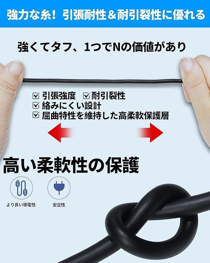 「 高弾性PVC素材 」ケーブルはより柔軟性の高い高弾性PVC素材で作られています。