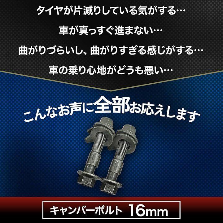 「参考車種一例」ヴェゼル CX-5 シビックタイプR オデッセイ CR-V アテンザ インテグラタイプS エクスプローラー ジェイド クロスロード エレメント エクリプス ラグレイト ACURA RDX MDX RSX、TOYOTA、SUZUKI、HONDA、NISSAN、MITSUBISHI、DAIHATSU、MAZDA、など、汎用タイプなのでその他16mmのキャンバーボルト装備車にも対応します。