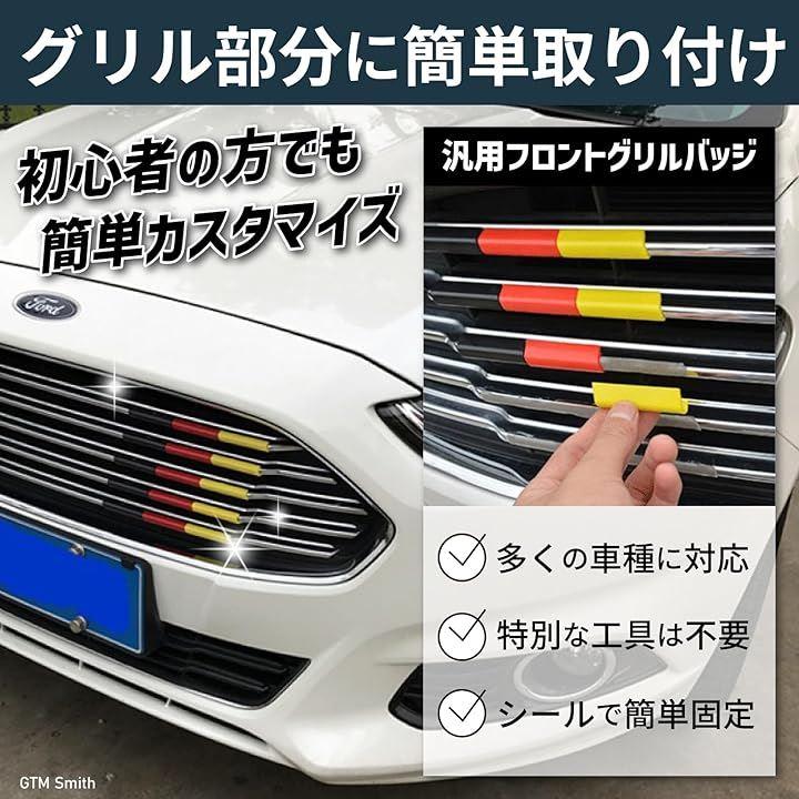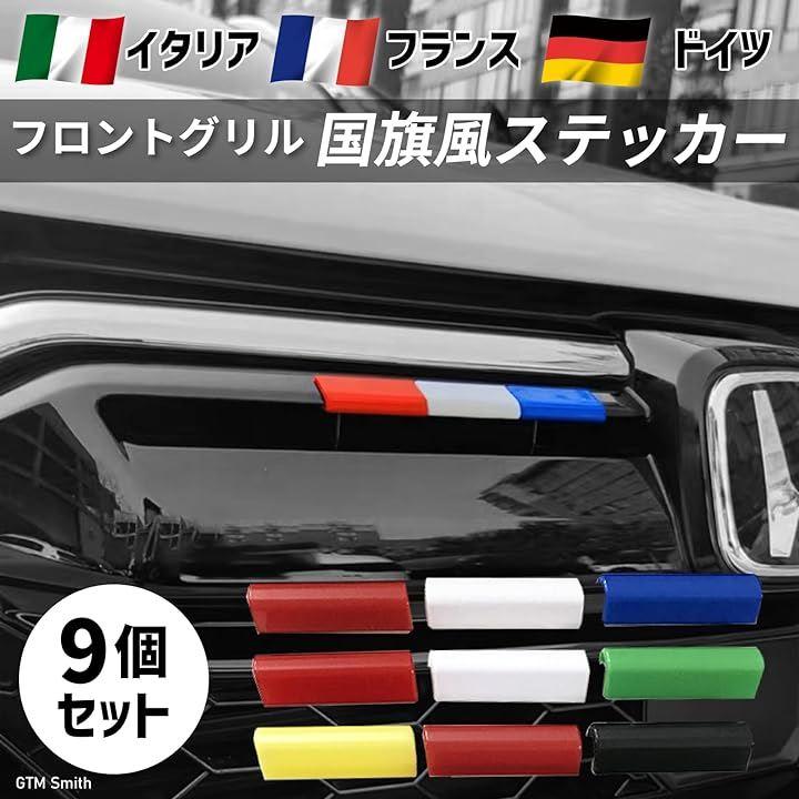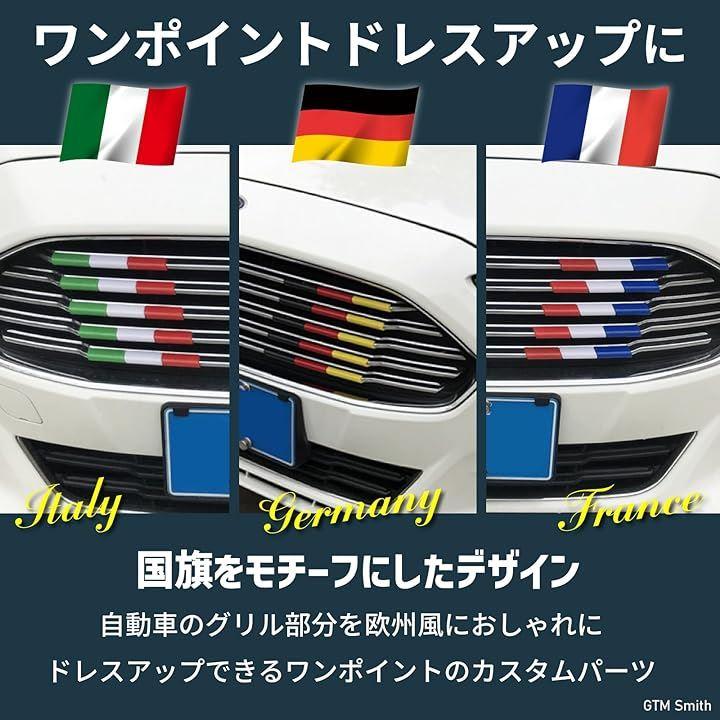 イタリア、フランス、ドイツなどの国旗をモチーフにしたデザインで、自動車のグリル部分を欧州風におしゃれにドレスアップできるワンポイントのカスタムパーツです。