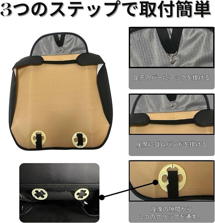 「簡単な取り付け」後部に2つのプラスチック製リテーナクリップ(シートバックの隙間に挟みます)、および前部のフック(車の座席の下のヒッチ)で簡単に取り付けられます。