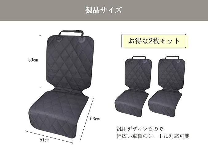 「商品仕様」シートカバー:2枚セット <サイズ> 背もたれ長:59cm シート長:63cm シート幅:51cm カラー:ブラック 生地:オックスフォード 性能:撥水効果