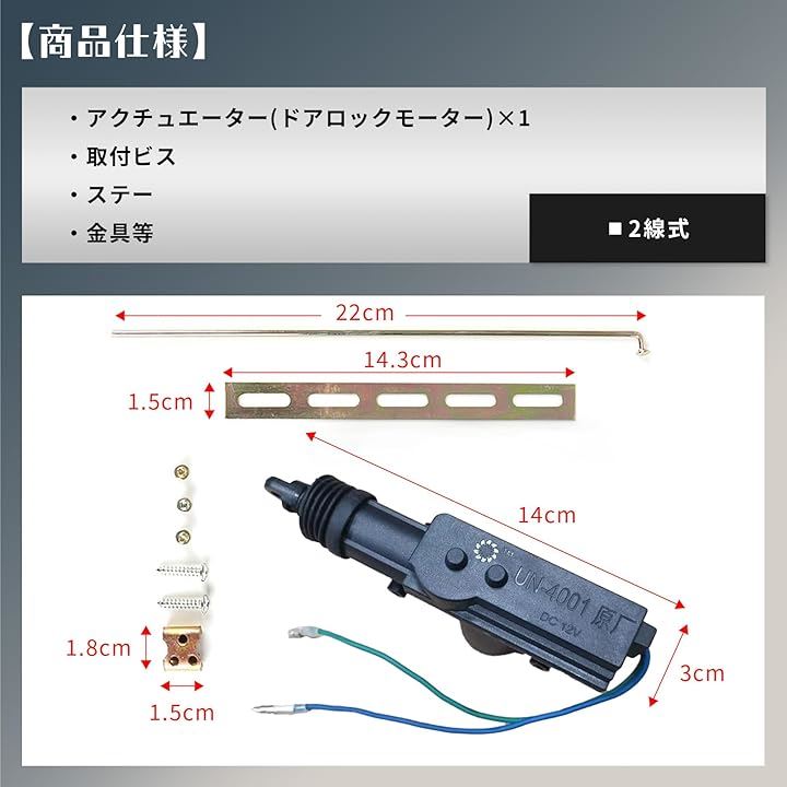 「12V汎用タイプ・幅広い車種に対応」2線式の12V車用アクチュエーター。