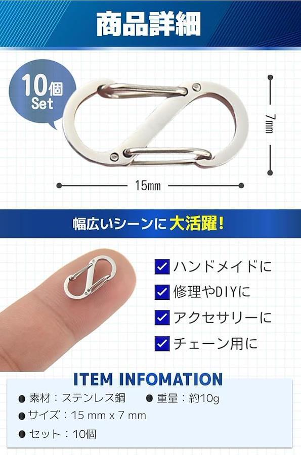 「商品詳細」素材:ステンレス鋼重量:約10g/サイズ:15 mm x 7 mm/セット:10個/