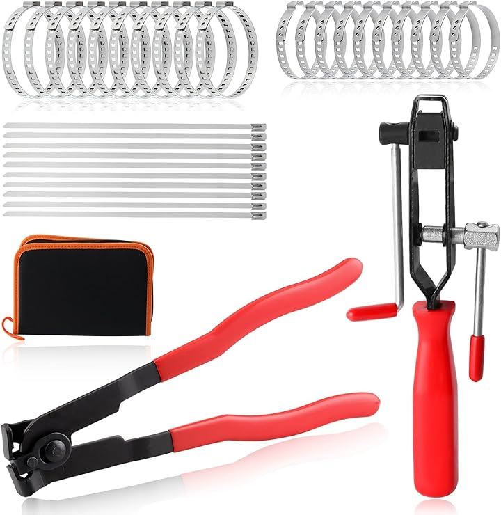 仕様:サイズ:1本 x CVブーツクランププライヤー、1本 x ブーツバンドカッター、10本 x 大きくクランプバンド、10本 x 小さくクランプバンド、10本 x 200mm 結束バンド ステンレス、1本 x 収納ポーチ付き。
