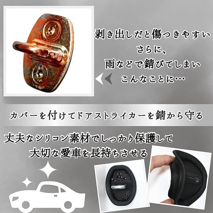 「愛車の静音性&美観をワンランクアップ。簡単装着で長期間保護」 ノイズ・異音を低減し、静かな車内を実現 ドアロックをサビ・腐食・傷から守る 高級感をプラスし、車のグレードアップに最適 高品質シリカゲル採用で耐久性抜群 両面テープで貼るだけの簡単装着