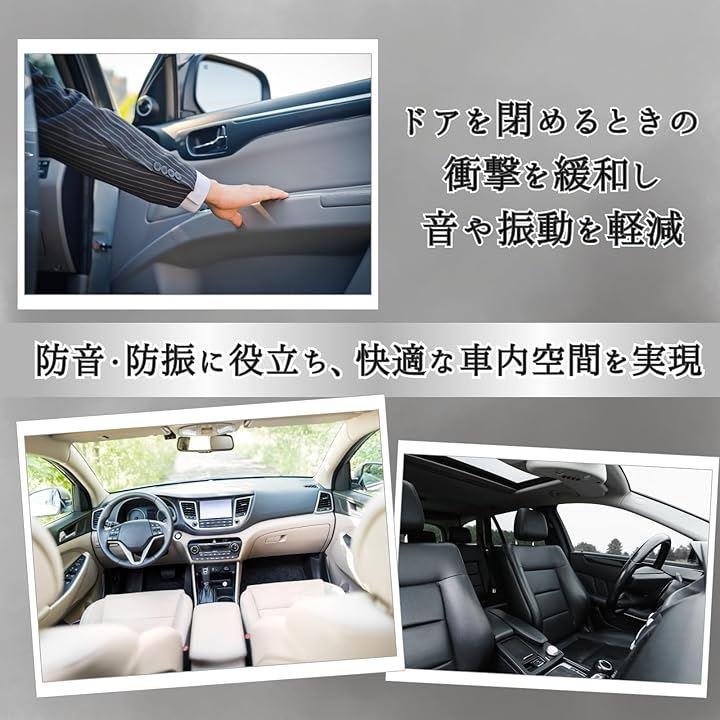 「商品仕様」 材質:高品質シリカゲル 機能:静音、防錆、防腐食、傷防止、ドア緩衝力軽減 取り付け方法:両面テープで簡単貼り付け(工具不要) 愛車の静音性、美観、耐久性をアップさせる必須アイテム。