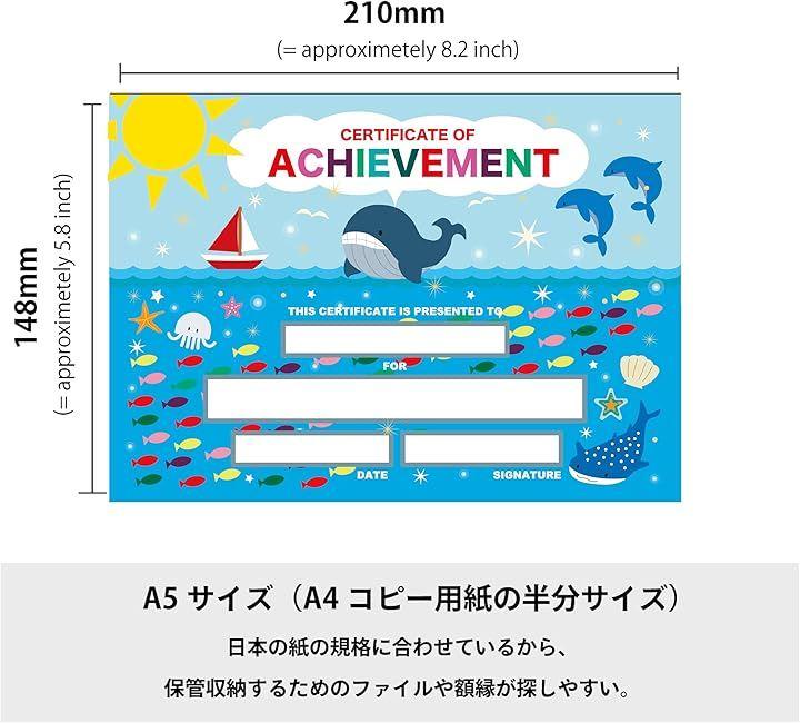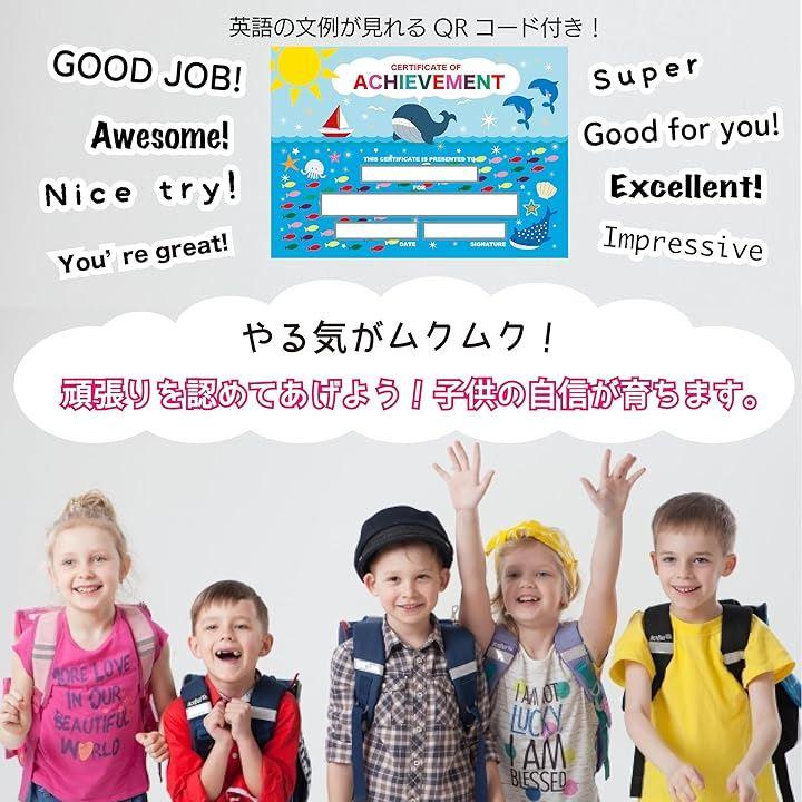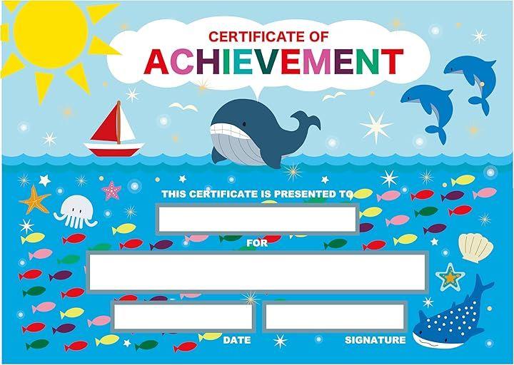 Compatible English Certificate of Achievement Ocean Certificate of Achievement Card with English Example Sentence QR Code for Kids Large Capacity