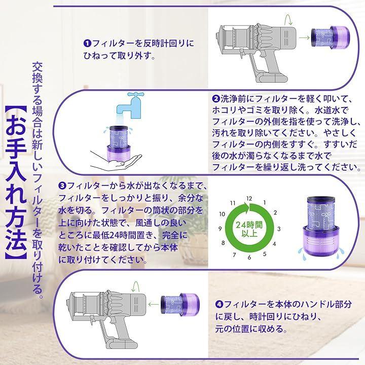 フィルターを水洗いしても吸引力が改善しなかったり、フィルターの汚れやニオイが取れない場合、またはフィルターが破損した場合などは新しいフィルターを交換してください。