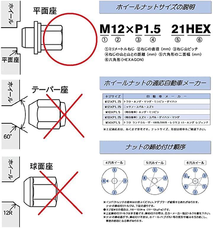 トヨタ、日産、三菱等の60°テーパー座ナットを必要とするホイールには使用できません。