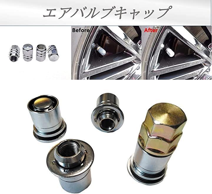 ・内歯車型のロックナット4個と同似色のエアバルブキャップ4個のセットです。