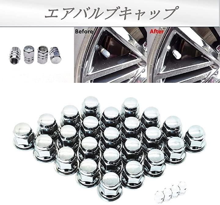 21HEX6角ナットが4穴用16個、5穴用20個、6穴用24個、さらに同似色のエアバルブキャップ4個のセットです。