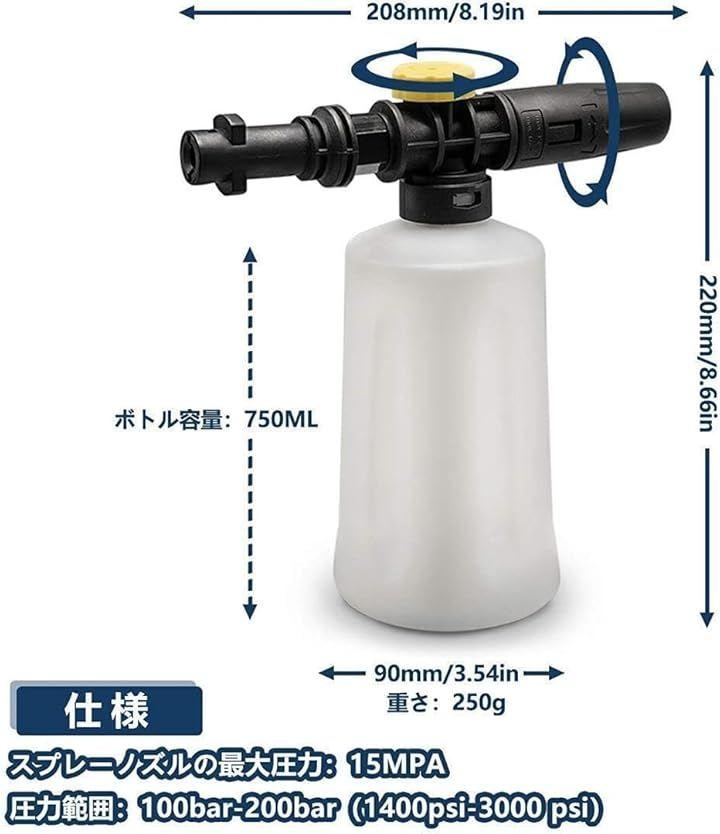 750ml容量で泡洗車が可能で、高発泡タイプです。