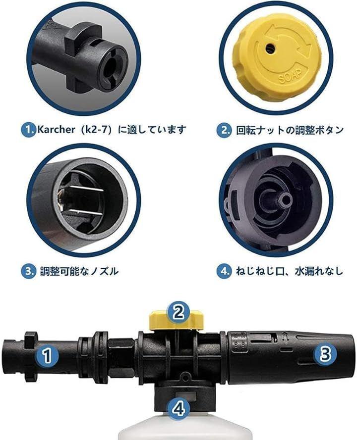 このフォームガンはケルヒャーK2~K7互換品で、調整ノズル付き。