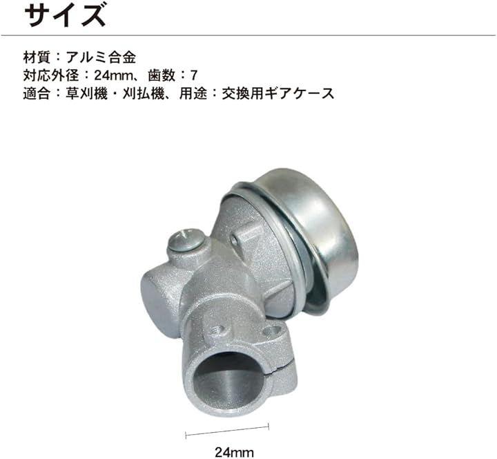 「商品詳細」材質:アルミ合金、対応外径:24mm、歯数:7、適合:草刈機・刈払機、用途:交換用ギアケース