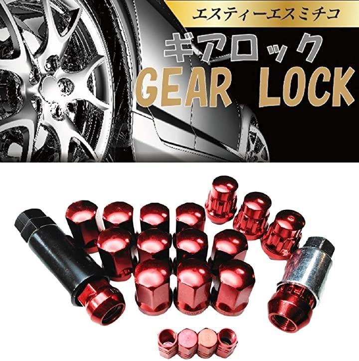 ・スチール製歯車型のロックナット4個と17HEX6角ナットが12個の4穴用で、色は 「赤」 ネジピッチは、1.25です。