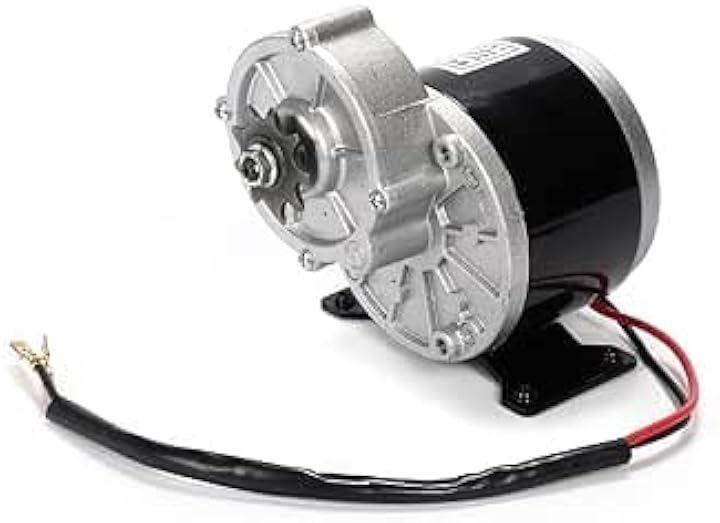 「商品内容」・本体一式(9歯スプロケット、スプロケット固定ナット付属)「サイズ」・画像に記載しております「材質」・アルミニウム「定格電圧」・24V「定格出力」250W「無負荷電流」・2.5A「定格トルク」・ 0.80N.m「モーター効率」・78%「減速比」・9.78 : 1「仕様用途」・電動自転車 ゴーカート スクーター ミニバイク ポケットバイク eバイク 乗用玩具 小型 オートバイ 等の制作や改造 等